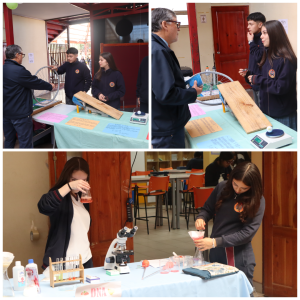 con mucho entusiasmo estudiantes de nuestro colegio, presentaron sus proyectos científicos, experimentos didácticos enfocados en la biología, física y química, esta muestra de carácter interno tuvo lugar en los patios y laboratorio, realizada el día 30 de octubre, dejó una gran experiencia de aprendizaje a todos sus participantes.